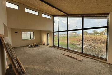 Дом внутри с предчистовой отделкой, фасад утеплен, установлены хорошие стеклопакеты WDS, 4-х камерные.