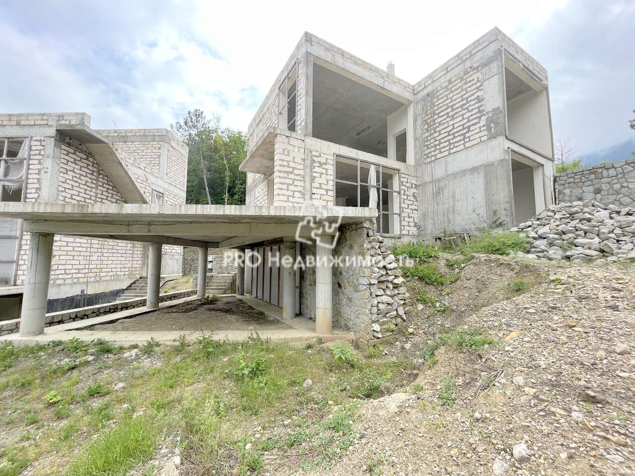 1. Три построенных дома ( укрепляющие подпорные стены - бут См. фотографии) введённые в эксплуатацию.